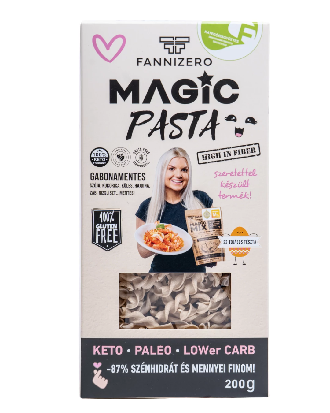 Gluténmentes, gabonamentes, szénhidrátban szegény, rostban gazdag 22 tojásos száraztészta.